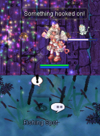 Once a fish bites, the emoji will change to a “!” emoji and your text will change to “Something has hooked on.” When the “!” appears, left click the Fishing Spot.