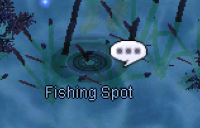 What are those black spirals in the water? A fishing spot? What do I do there and what are the rewards? (Hint: Bloody Branches and Old Card Albums are possibilities!)